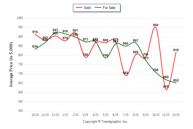 December 2025 Average For Sale Price was Depreciating and Average Sold Price was Neutral**