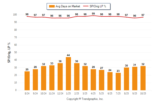 October 2025 Average Days on Market trend was Rising and Sold/Original List Price Ratio Remains Steady**