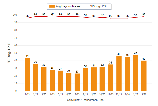 March 2026 Average Days on Market trend Remains Steady and Sold/Original List Price Ratio was Rising**