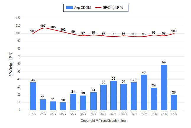 March 2026 Average Continuous Days on Market trend was Falling and Sold/Original List Price Ratio was Rising**