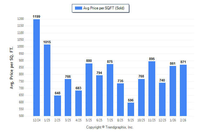 February 2026 Average Sold Price per Square Footage was Appreciating**
