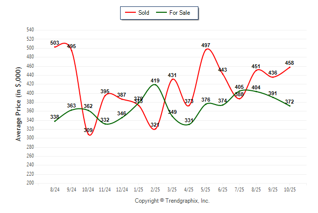 October 2025 Average For Sale Price was Neutral and Average Sold Price was Appreciating**