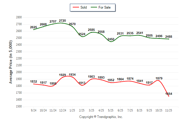 November 2025 Average For Sale Price was Depreciating and Average Sold Price was Depreciating**