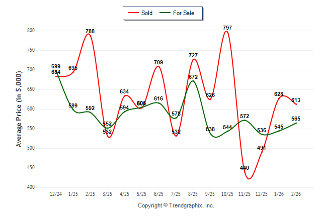 February 2026 Average For Sale Price was Appreciating and Average Sold Price was Neutral**
