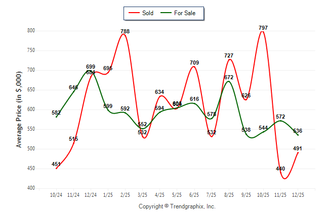 December 2025 Average For Sale Price was Depreciating and Average Sold Price was Neutral**