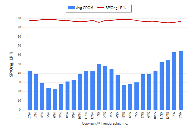 February 2026 Average Continuous Days on Market trend was Rising and Sold/Original List Price Ratio Remains Steady**