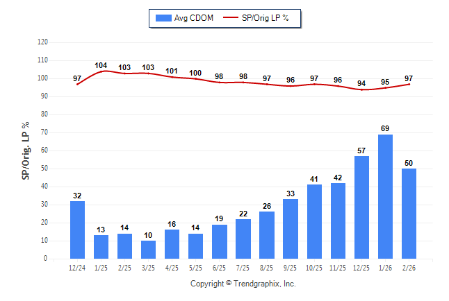 December 2025 Average Continuous Days on Market trend was Rising and Sold/Original List Price Ratio was Falling**