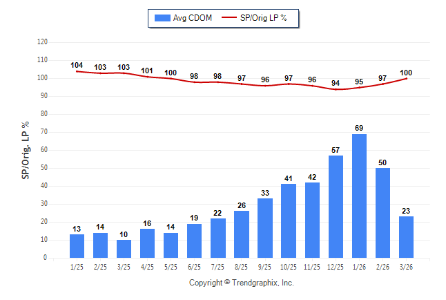 March 2026 Average Continuous Days on Market trend was Falling and Sold/Original List Price Ratio was Rising**