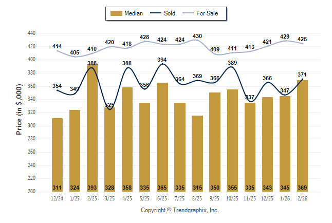February 2026 Median Price was Appreciating, Avg. For Sale Price was Neutral, and Avg. Sold Price was Neutral**