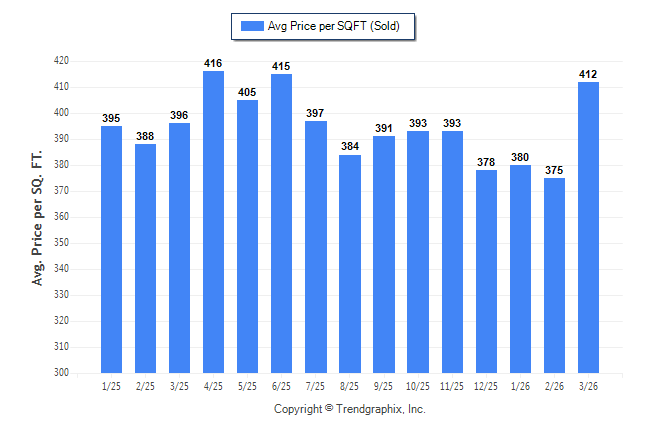 March 2026 Average Sold Price per Square Footage was Appreciating**