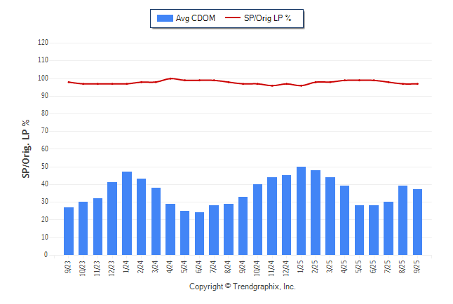 September 2025 Average Continuous Days on Market trend Remains Steady and Sold/Original List Price Ratio was Falling**