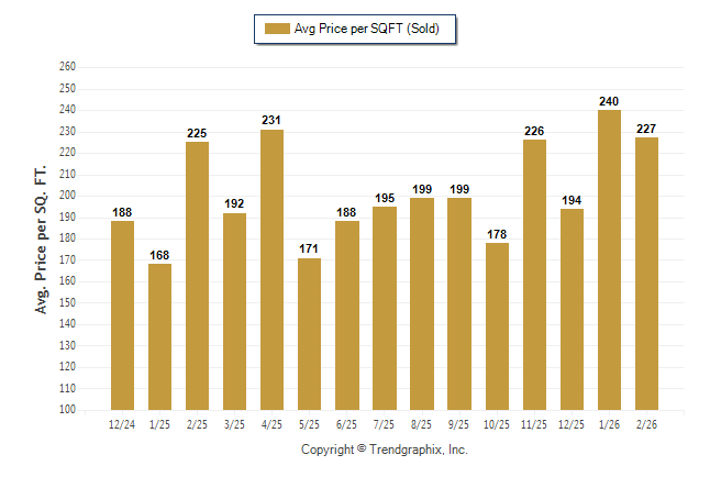 February 2026 Average Sold Price per Square Footage was Neutral**