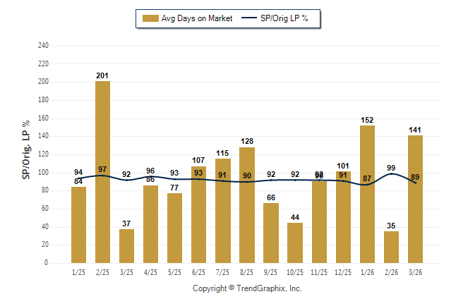 March 2026 Average Days on Market trend Remains Steady and Sold/Original List Price Ratio Remains Steady**