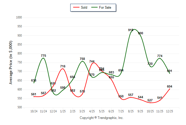 December 2025 Average For Sale Price was Depreciating and Average Sold Price was Appreciating**