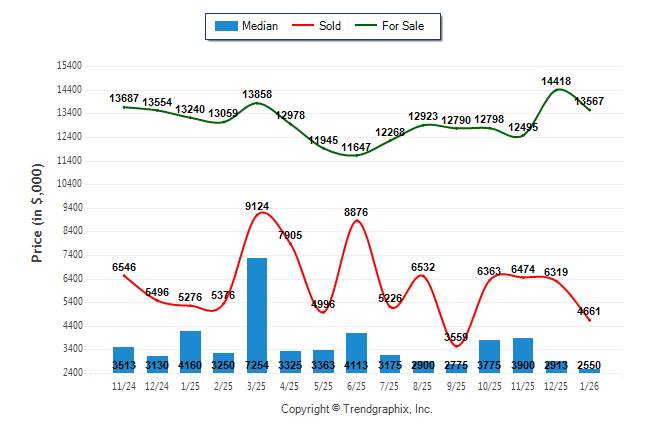 January 2026 Median Price was Depreciating, Avg. For Sale Price was Neutral, and Avg. Sold Price was Neutral**