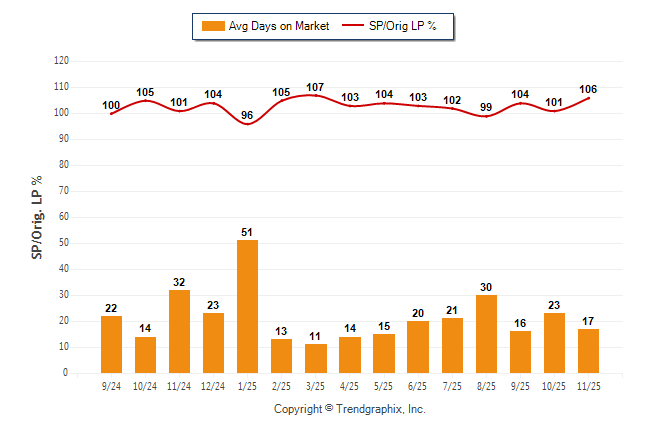 November 2025 Average Days on Market trend Remains Steady and Sold/Original List Price Ratio was Rising**