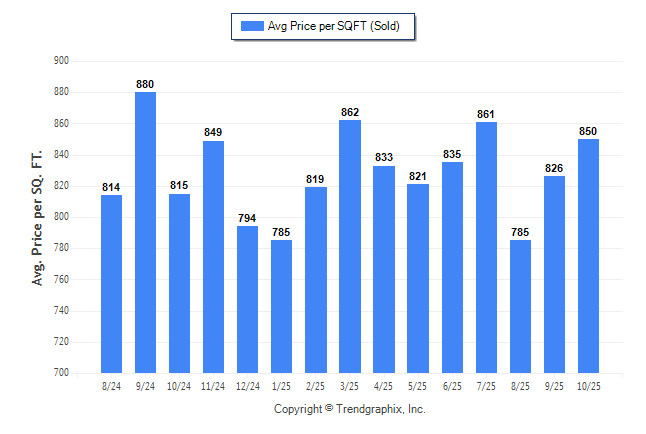 October 2025 Average Sold Price per Square Footage was Neutral**