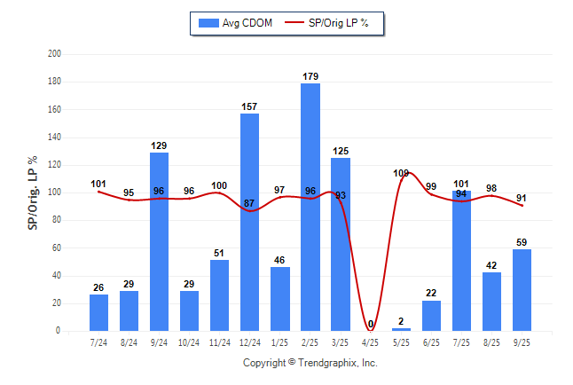 September 2025 Average Continuous Days on Market trend Remains Steady and Sold/Original List Price Ratio was Falling**