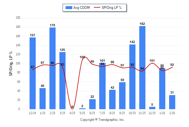 February 2026 Average Continuous Days on Market trend Remains Steady and Sold/Original List Price Ratio Remains Steady**
