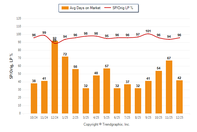 December 2025 Average Days on Market trend Remains Steady and Sold/Original List Price Ratio Remains Steady**