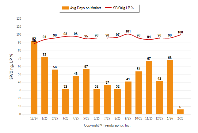 February 2026 Average Days on Market trend was Falling and Sold/Original List Price Ratio was Rising**