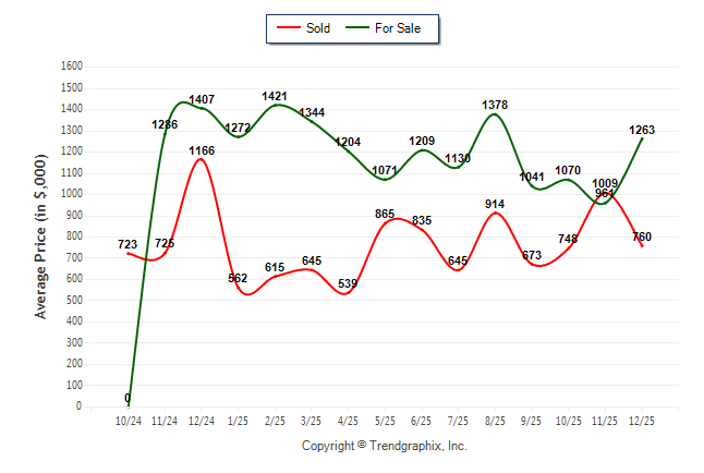 December 2025 Average For Sale Price was Neutral and Average Sold Price was Neutral**