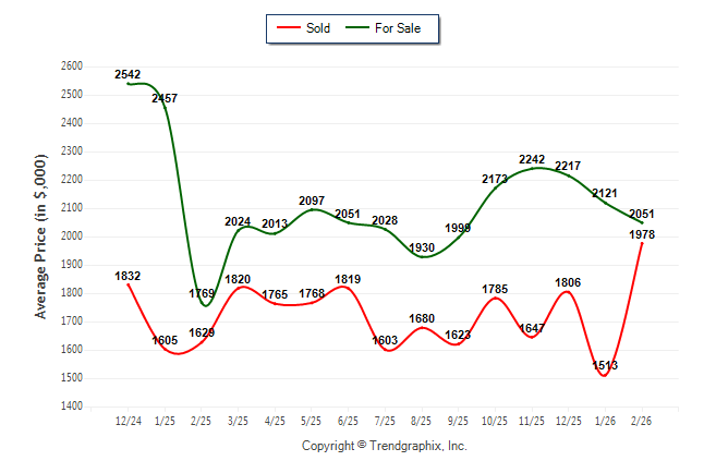 February 2026 Average For Sale Price was Depreciating and Average Sold Price was Appreciating**