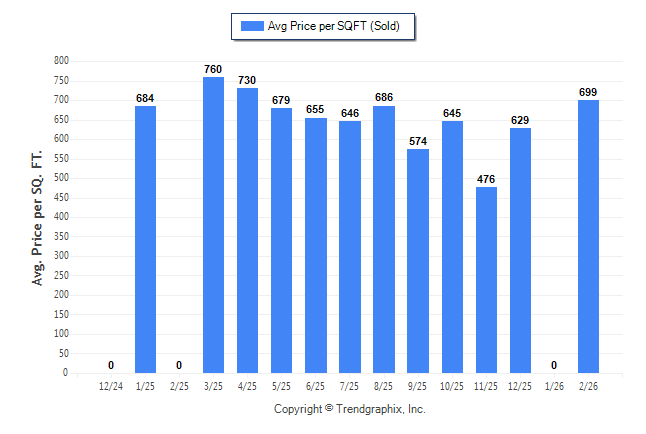 February 2026 Average Sold Price per Square Footage was Appreciating**