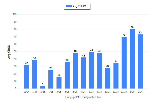 February 2026 Average Continuous Days on Market trend Remains Steady**