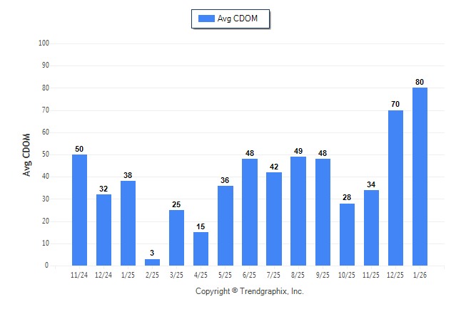 January 2026 Average Continuous Days on Market trend was Rising**