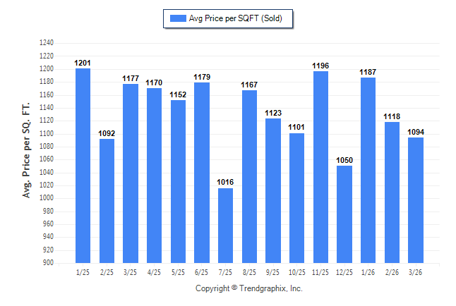 March 2026 Average Sold Price per Square Footage was Neutral**
