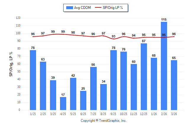 March 2026 Average Continuous Days on Market trend Remains Steady and Sold/Original List Price Ratio Remains Steady**