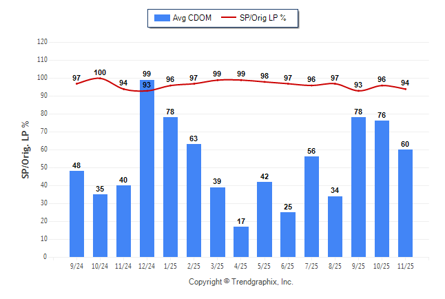 November 2025 Average Continuous Days on Market trend Remains Steady and Sold/Original List Price Ratio Remains Steady**