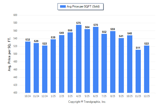 December 2025 Average Sold Price per Square Footage was Neutral**