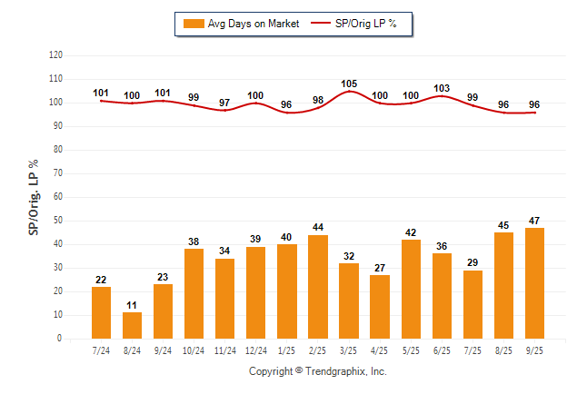 September 2025 Average Days on Market trend was Rising and Sold/Original List Price Ratio was Falling**