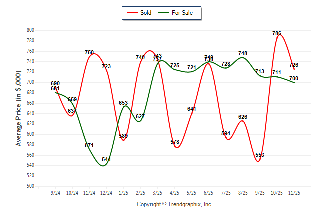 November 2025 Average For Sale Price was Depreciating and Average Sold Price was Neutral**