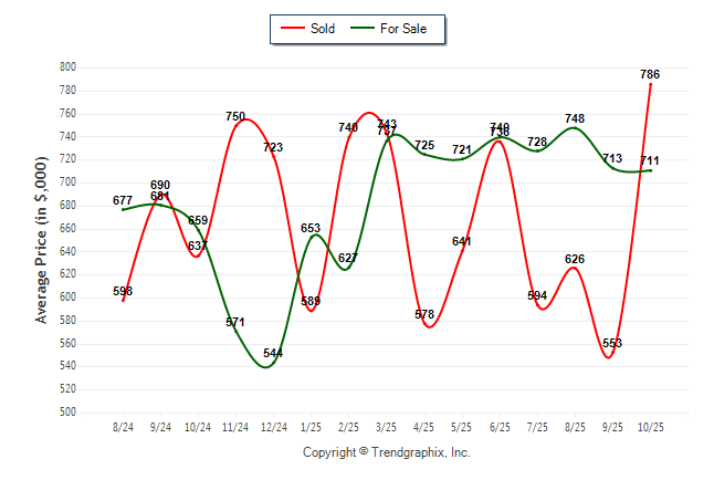 October 2025 Average For Sale Price was Depreciating and Average Sold Price was Neutral**