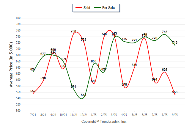 September 2025 Average For Sale Price was Neutral and Average Sold Price was Depreciating**