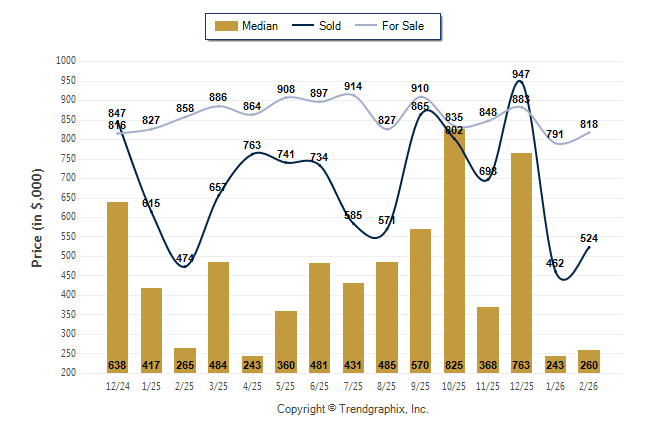 February 2026 Median Price was Neutral, Avg. For Sale Price was Neutral, and Avg. Sold Price was Neutral**