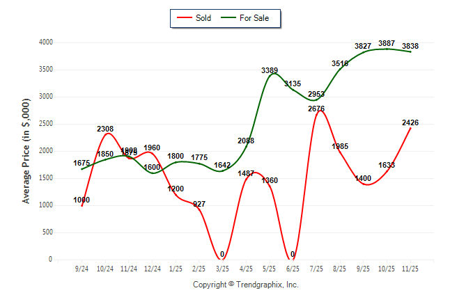 November 2025 Average For Sale Price was Neutral and Average Sold Price was Neutral**