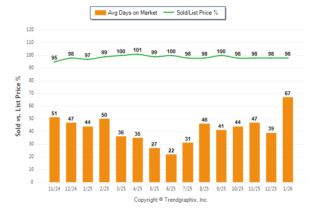 January 2026 Average Days on Market trend was Rising and Sold/List Price Ratio was Falling**