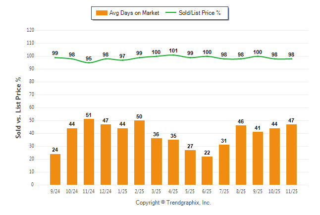 November 2025 Average Days on Market trend was Rising and Sold/List Price Ratio Remains Steady**