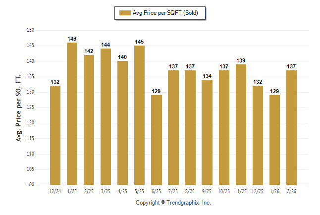 February 2026 Average Sold Price per Square Footage was Neutral**