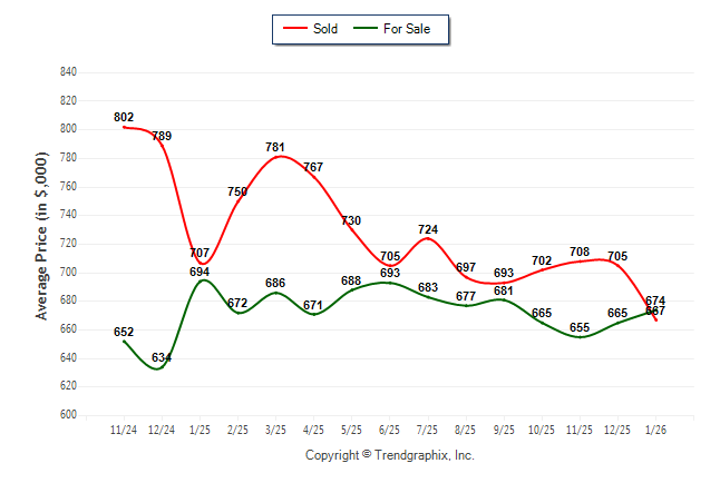 January 2026 Average For Sale Price was Neutral and Average Sold Price was Depreciating**