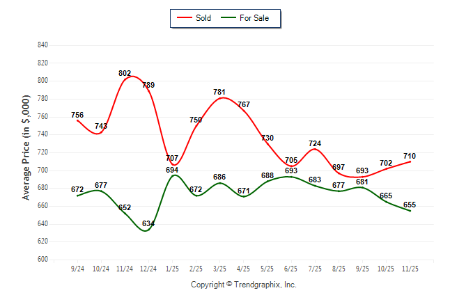 November 2025 Average For Sale Price was Depreciating and Average Sold Price was Neutral**