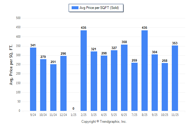 November 2025 Average Sold Price per Square Footage was Appreciating**