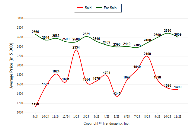 November 2025 Average For Sale Price was Neutral and Average Sold Price was Depreciating**