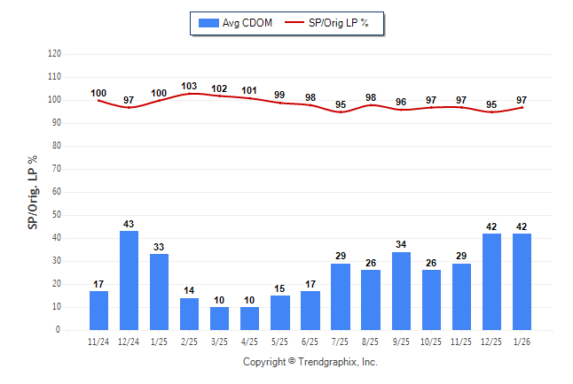 January 2026 Average Continuous Days on Market trend was Rising and Sold/Original List Price Ratio Remains Steady**