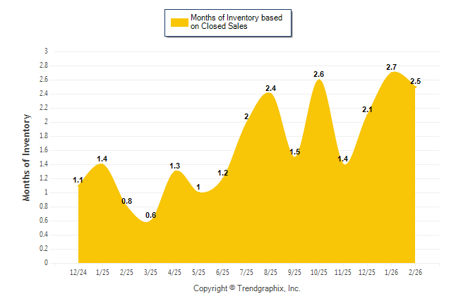 Curnt vs. Same Month 1 Yr Ago: Months of Inventory (Closed Sales)
