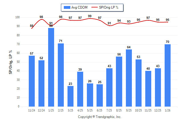 January 2026 Average Continuous Days on Market trend Remains Steady and Sold/Original List Price Ratio Remains Steady**